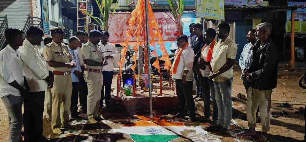 ಬೆಳಗಾವಿ :ಮುಗಳಖೋಡ : ಪಟ್ಟಣದಲ್ಲಿ ಗೆಳೆಯರ ಬಳಗದಿಂದ ಭಜರಂಗದಳದ ಕಟ್ಟೆಯ ಮೇಲೆ ಅ.15ರಂದು ಮಧ್ಯರಾತ್ರಿ 12 ಗಂಟೆಗೆ 77ನೇ ಸ್ವಾತಂತ್ರ್ಯೊತ್ಸವದ ಧ್ವಜಾರೋಹಣವನ್ನು ಹಾರೂಗೇರಿಯ ಸಿಪಿಐ ರವಿಚಂದ್ರನ್ ಬಡಪಕೀರಪ್ಪನವರ ನೆರವೇರಿಸಿದರು.